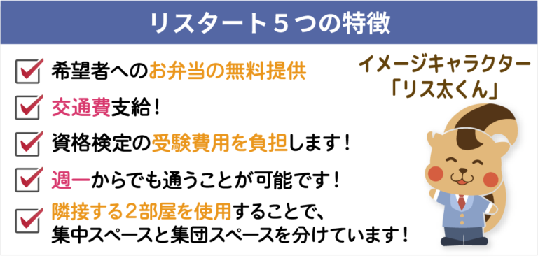 就労移行支援事業所リスタート高田馬場では、9割の方が無料での利用ができており、認知行動療法を取り入れた講座など多彩なサポートにより、圧倒的な就職率を実現しています!
