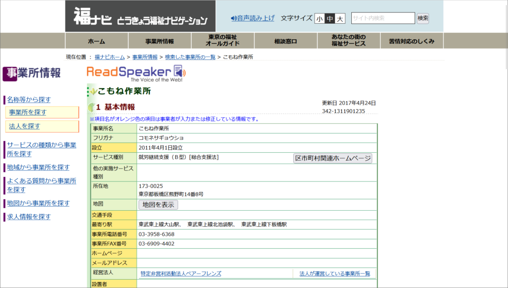 | Webサイト | こもね作業所 |