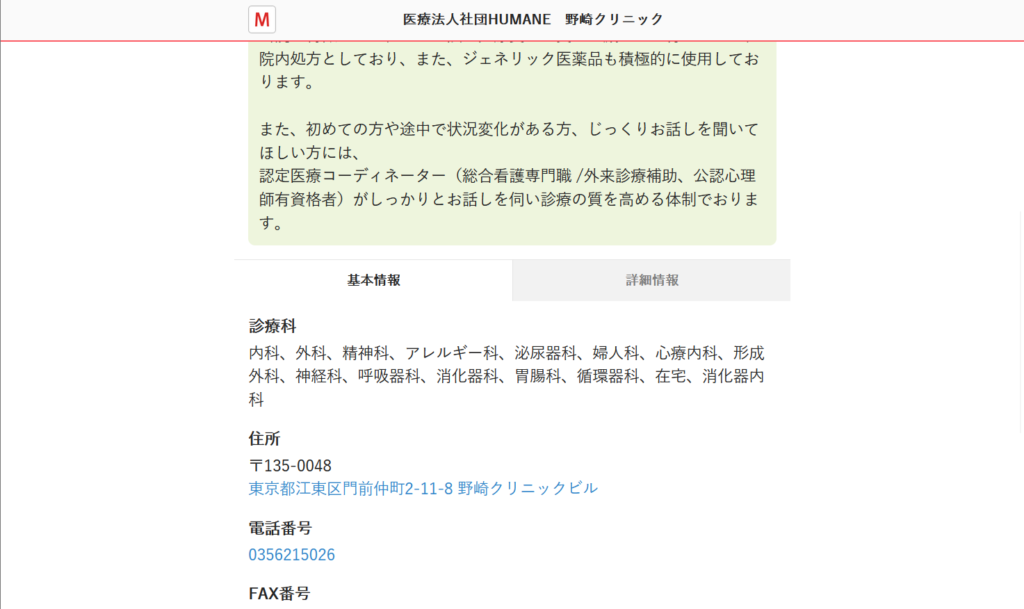| 所在地 | 東京都江東区門前仲町2-11-8 野崎クリニックビル |