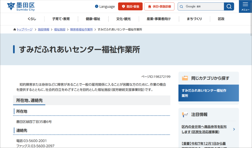 Webサイトすみだふれあいセンター福祉作業所