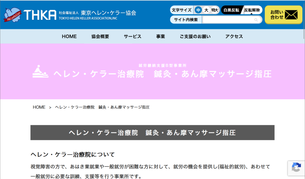 | Webサイト | ヘレン・ケラー治療院鍼灸・あん摩マッサージ指圧 |