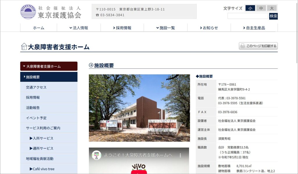 | Webサイト | 大泉障害者支援ホーム |
