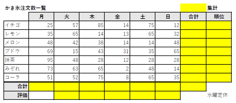 ③ 以下の「かき氷注文数一覧」を作成し、次の問に答えましょう。
